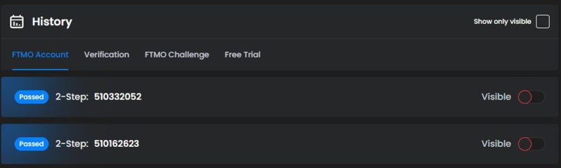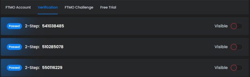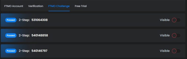 On the right, you can see screenshots of our launched challenges, verifications and the finished payout accounts managed at FTMO, so you can see for yourself the success of our PropFirm portfolio settings. Our success rate is no less than 100%.